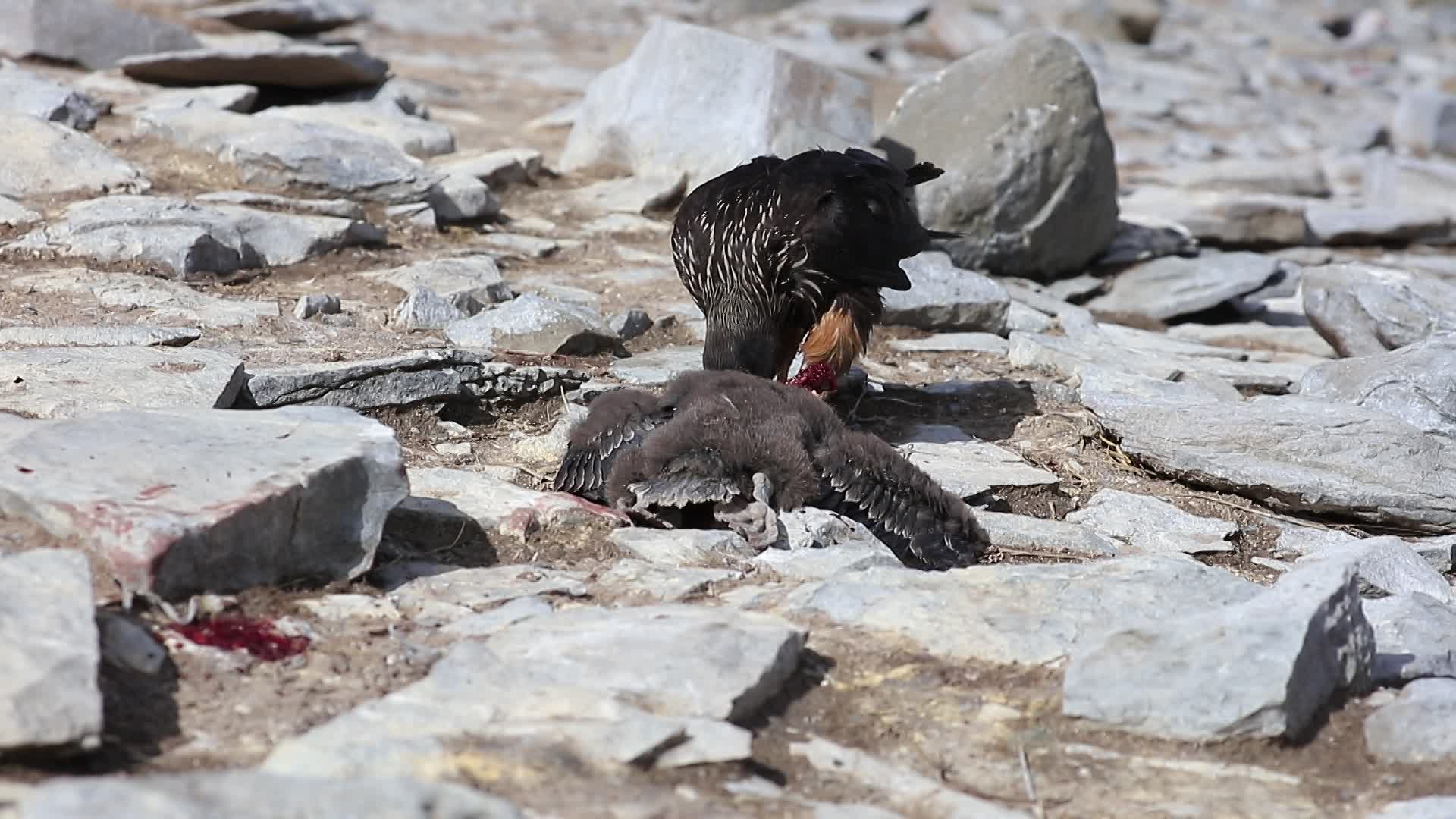 Striated Caracara heads Juvenile Imperial Shag - Sea lion Island - Falkland Islands