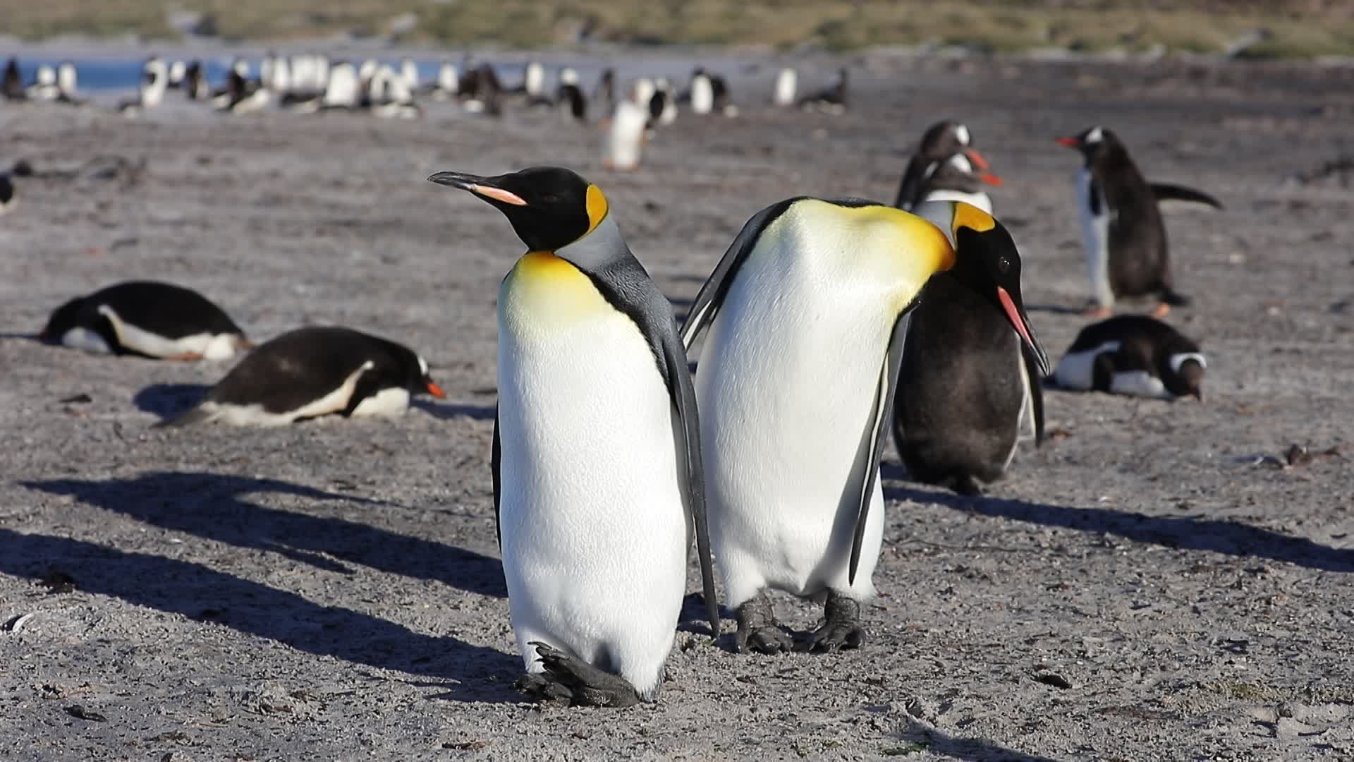 Synchronous King Penguins - Sea lion Island - Falkland Islands